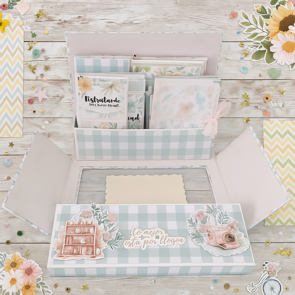 Trabajar con la extraordinaria colección "En Flor", diseñada por Made by Amaranta, es una experiencia inigualable y altamente creativa. Al realizar esta caja explosiva, los participantes tienen la oportunidad de agregar un elemento sorpresa a sus álbumes y tarjetas,