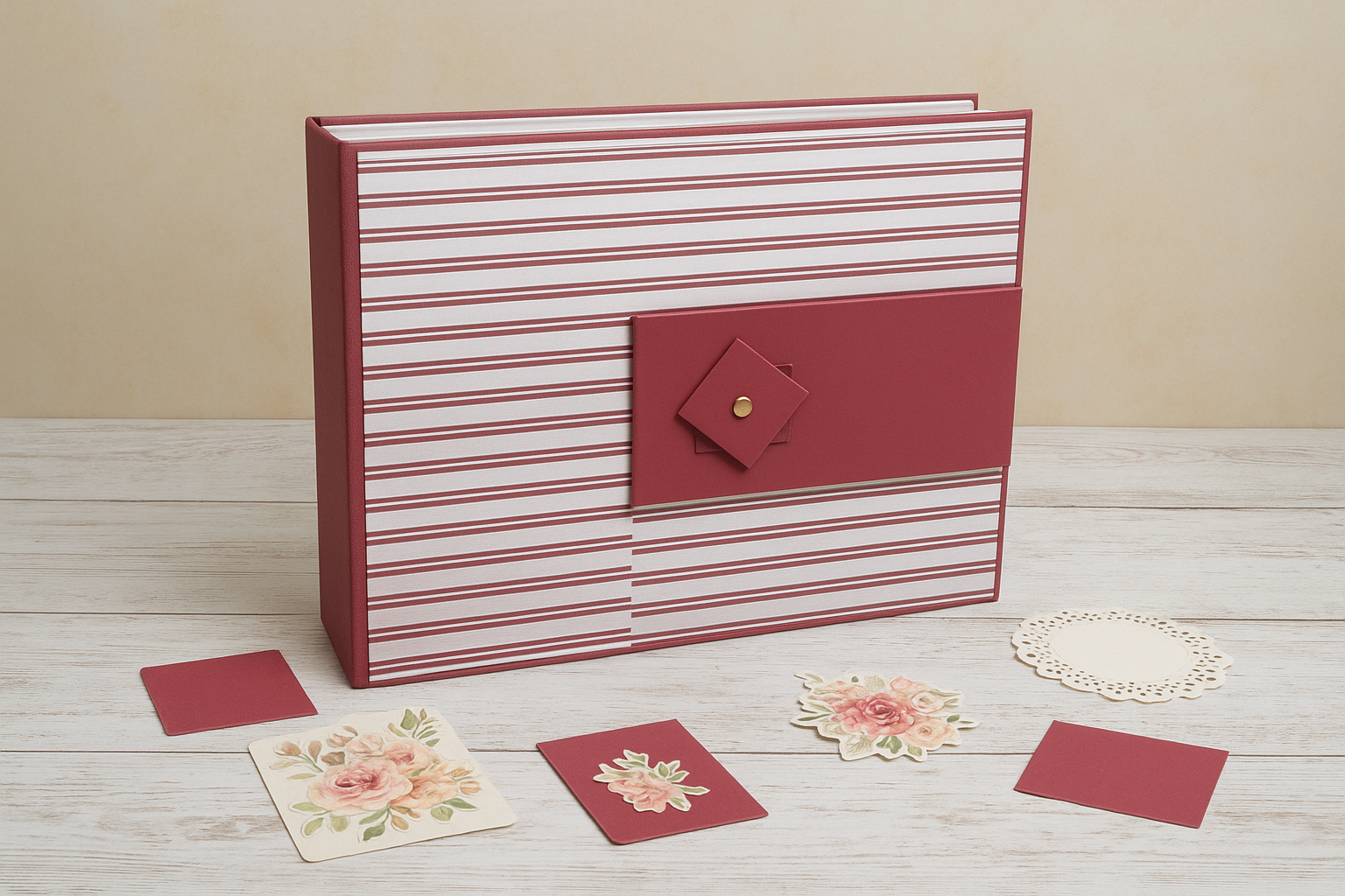 En este mini álbum de temática rojo y negro,hemos utilizado la hermosa colección diseñada por Made by Amaranta. Este álbum no solo captura momentos especiales, sino que también destaca por sus despegables ingeniosos que añaden un toque de dinamismo y creatividad a cada página. La combinación de los colores rojo y negro aporta un estilo elegante y contemporáneo, perfecto para personalizar con fotos y recuerdos. Invitamos a todos los entusiastas del scrapbooking a unirse y explorar las técnicas de diseño que permiten dar vida a este hermoso álbum, donde cada detalle cuenta una historia única.