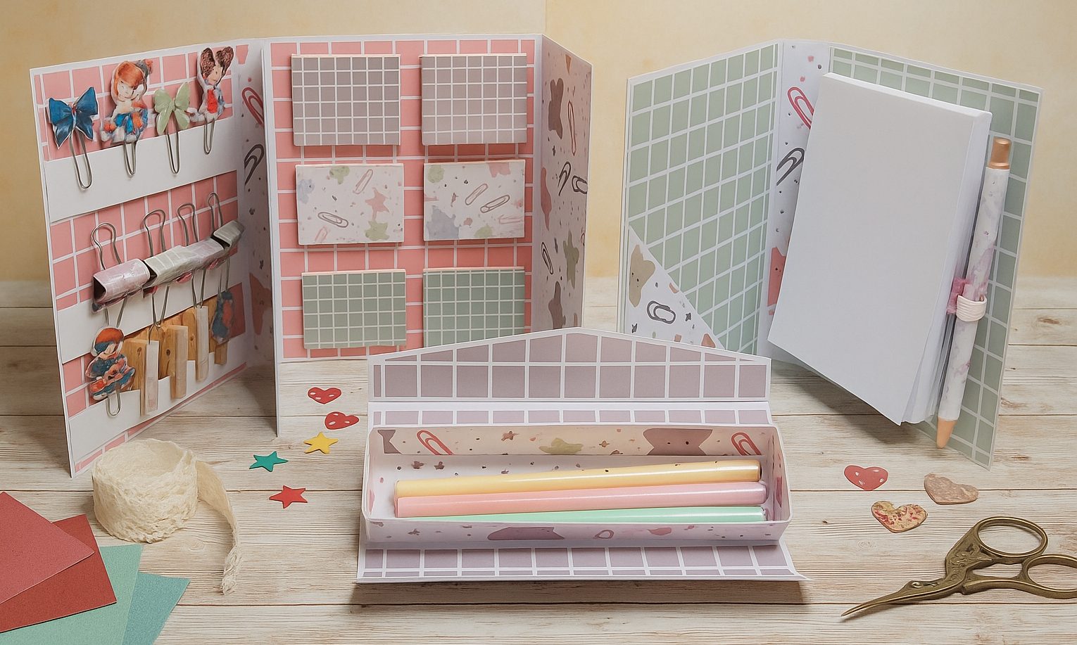Te presentamos el increíble kit de escritorio compuesto por un porta notas, una guía de post-it y un porta lápices, todos diseñados con la encantadora colección digital "Vuelta al Cole". Este kit no solo es funcional, sino también una forma creativa de personalizar tu espacio de trabajo. Con colores vibrantes y diseños inspiradores, cada elemento te ayudará a mantener tus ideas organizadas y a dar rienda suelta a tu creatividad. ¡Únete a nosotros para aprender a crear estos útiles y hermosos complementos que harán que tus tareas diarias sean mucho más divertidas!